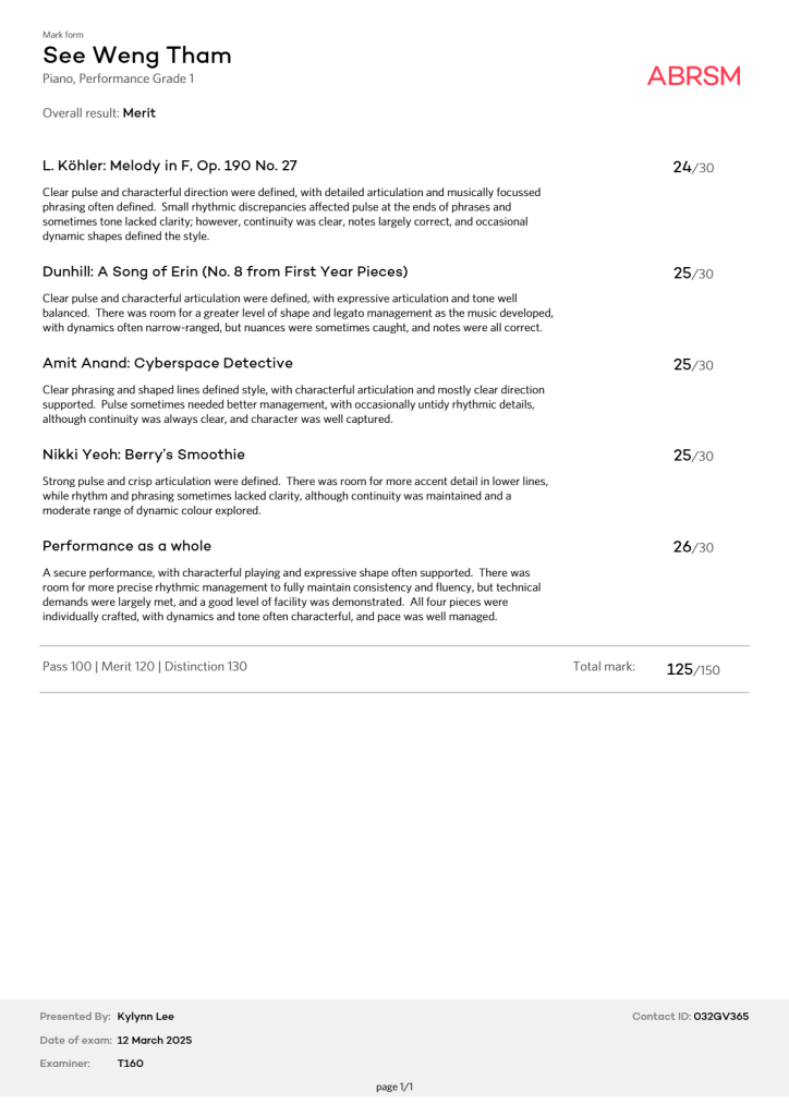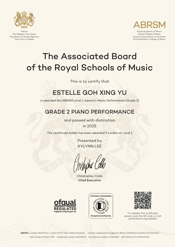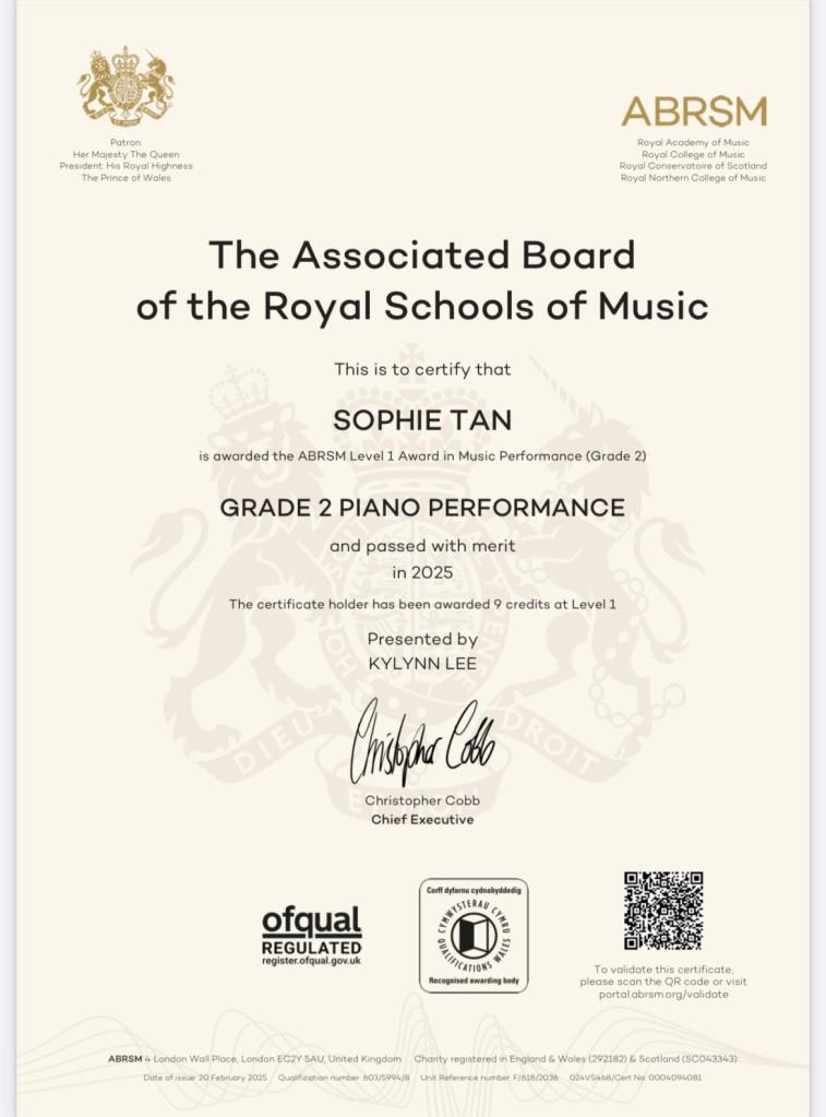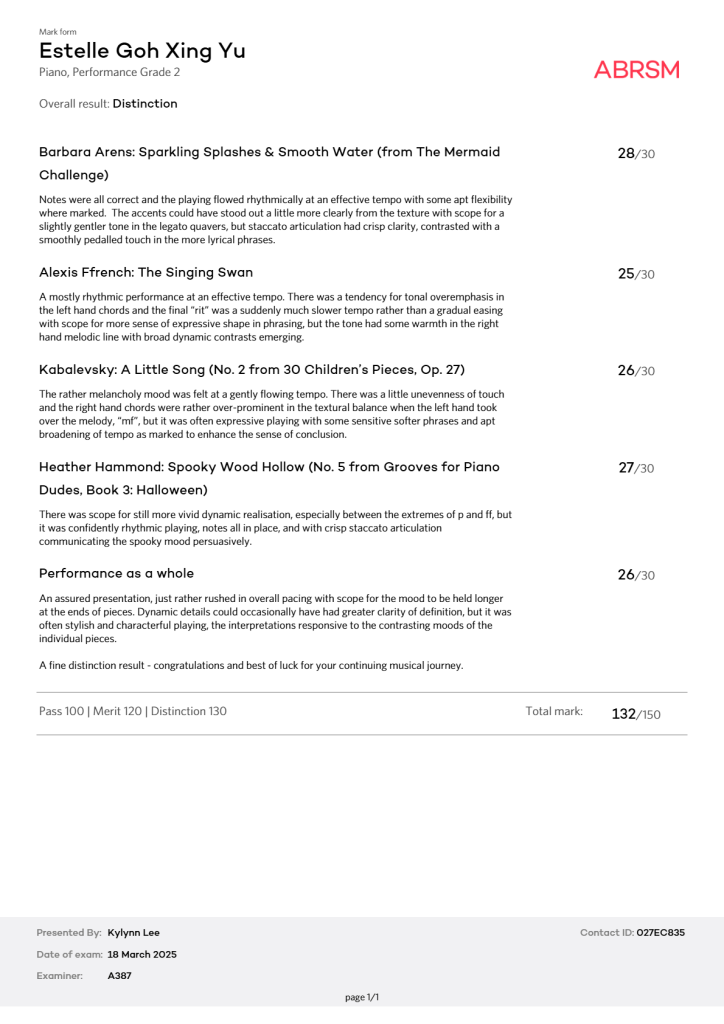 ” We’re thankful to have Teacher Kylynn as Estelle’s piano teacher. Over the years, we’ve seen real improvement in Estelle’s playing and even more importantly, a growing love for music. Teacher Kylynn’s patient and supportive teaching style has helped build both her skills and confidence. It’s been a joy to watch Estelle thrive under her guidance. “