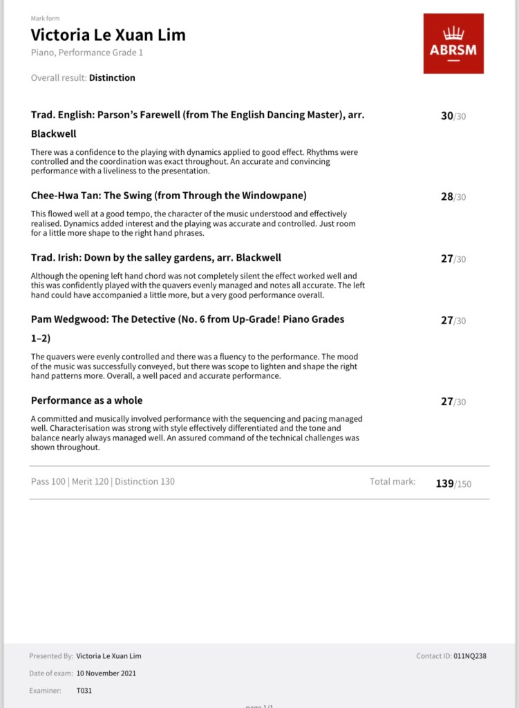 It was Teacher Kylynn’s first in-person recital session with her students. They had a splendid time performing pieces ranging from Classical to Disney favourites! It was a pivotal and challenging period for the students yet it was admirable how they were all adaptable with the overall changes to physical classes after an extended period of conducting online classes.