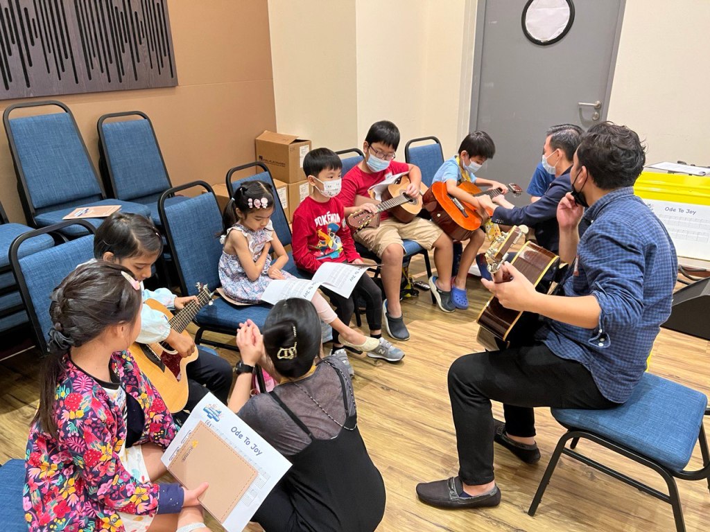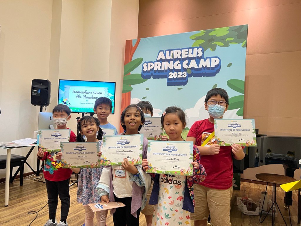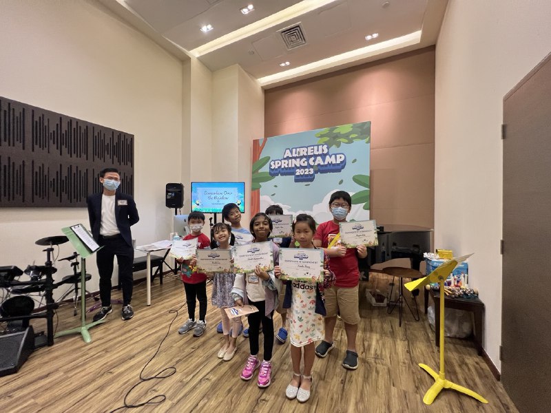 In March 2023, a 1-day music camp program was organised and held for about half a day with lunch included for these kids! This music camp was planned as a 1-day and 3-days program respectively, and it is a wonderful opportunity for students aged 4-12 who registered for it to bond and interact with fellow students from different outlets of Aureus Academy during their March school holidays period, where they came together to learn different instruments with one another. Fun-filled games, interactive bonding activities were planned and carried out to test the kids’ music knowledge in a light-hearted approach, with hopes for them to pick up new musical instruments overall.